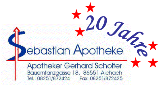 Aufgrund der Nähe der Apotheke zur Sebastianskapelle sowie der besonderen Verehrung, die der hl. Sebastian in Aichach genießt, war der Name für die neugegründete Apotheke naheliegend: