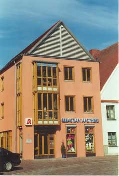 Das zentral in der Bauerntanzgasse 18 gelegene Haus fällt durch seine moderne Architektur auf. Der damalige Geschäftsführer der Baugenossenschaft, Kurt Paul, erklärte zur Eröffnung: "Wir wollten keine historische Fassade, sondern einen modernen ins Ortsbild passenden Bau mit ansprechender optischer Gestaltung, und das ist uns gelungen."